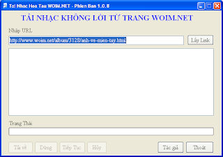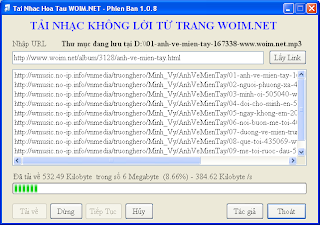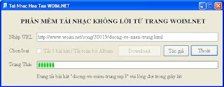 Đây là một chương trình khá đơn giản và được viết bằng ngôn ngữ tiếng việt nên rất dễ sử dụng, Để tải nhạc bạn chỉ cần vào trang woim.net, chọn một bài hát mình thích sau đó copy link cho vào khung nhập URL bên dưới.